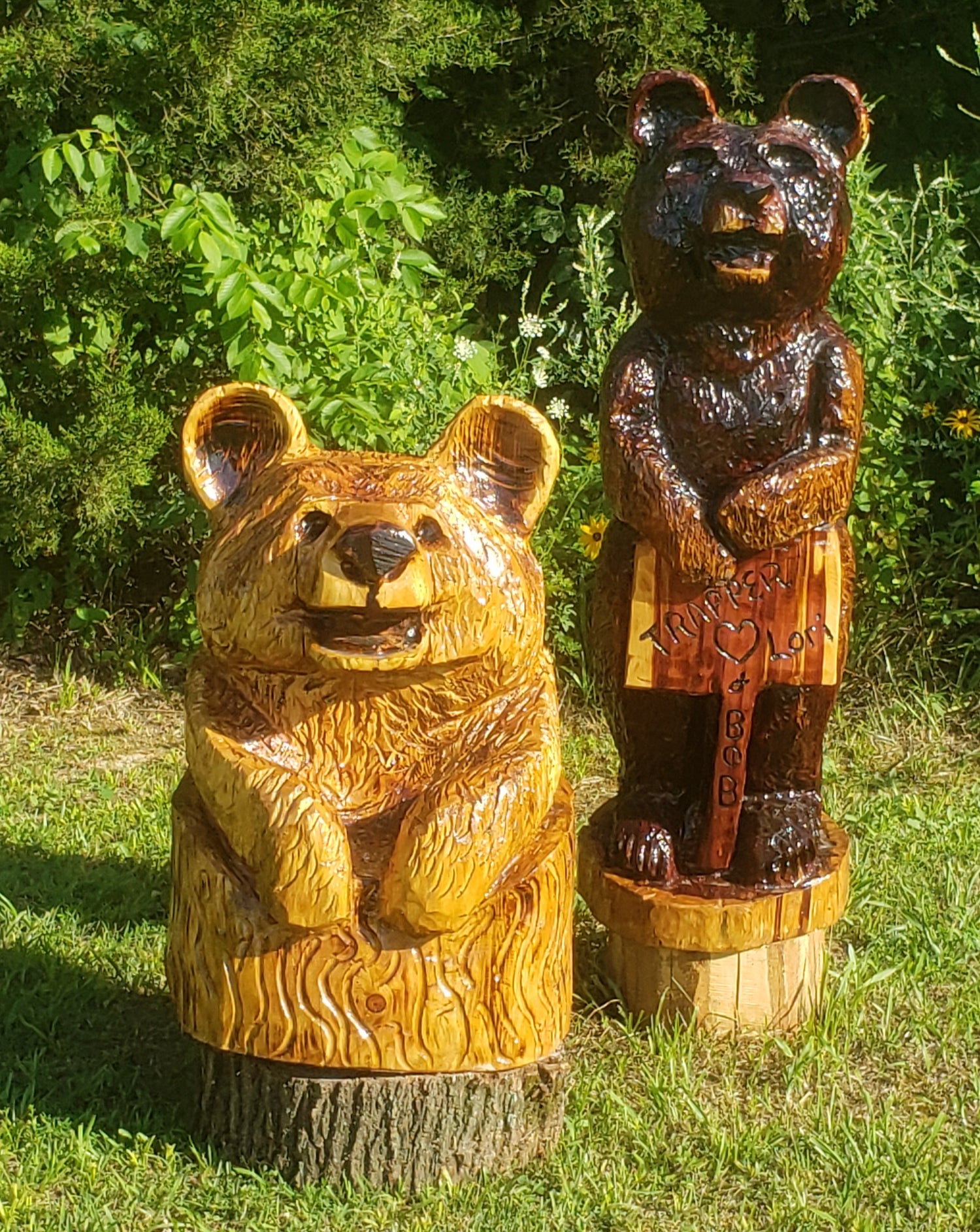 Chainsaw carving 3 ft bear, hand-carved with a persoalized sign.